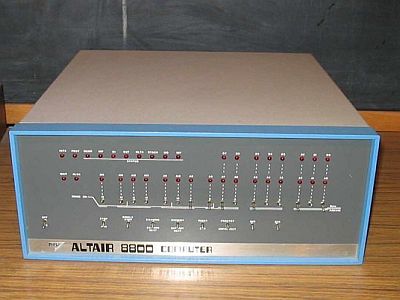 It didn’t take long to realize this thing wasn’t a radio, it had two banks of little red lights (LED’s) with 16 switches under them and another row of 9 switches under those. The box came from a company called “MITS” and it had- what I thought- very futuristic lettering at the bottom.. “ALTAIR 8800 COMPUTER”.